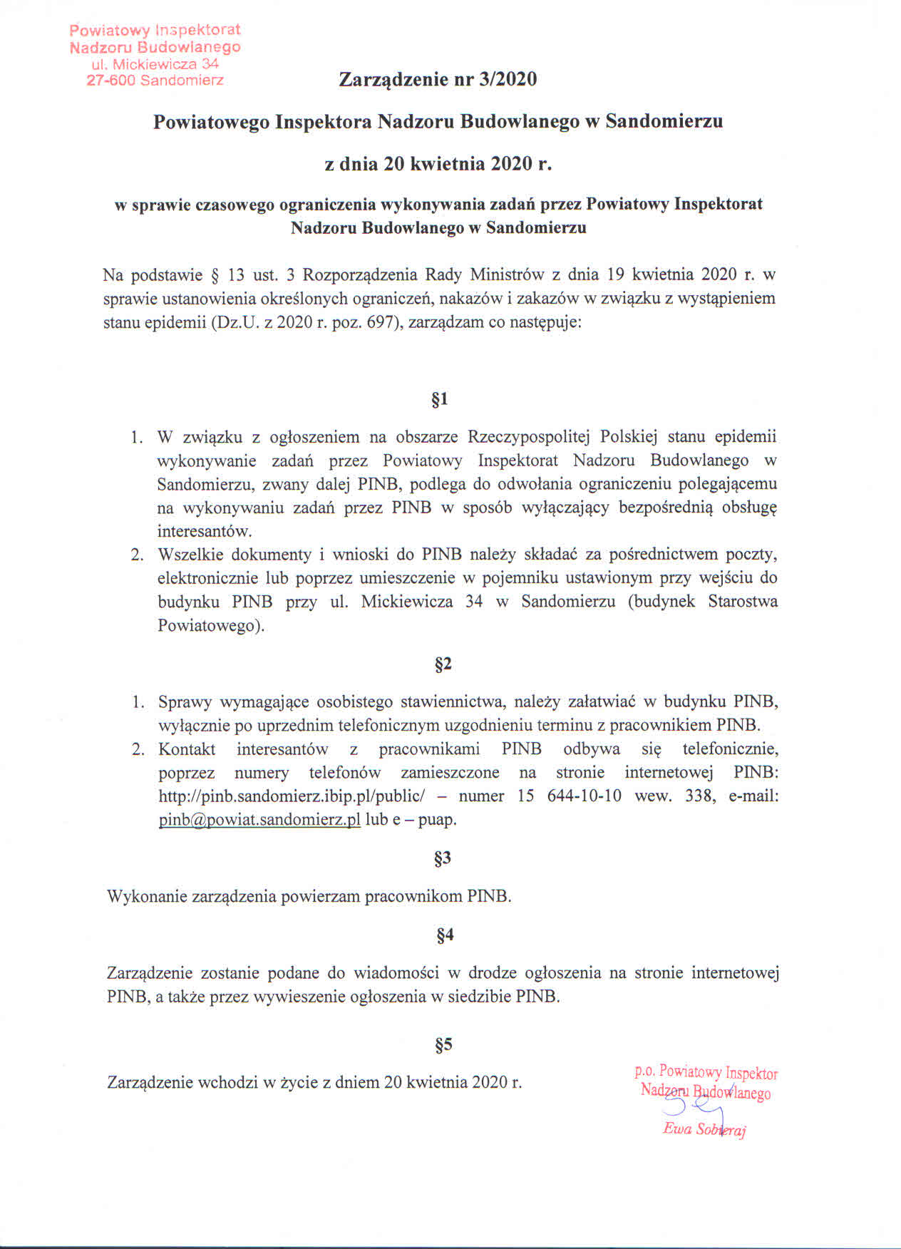 Zarządzenie nr 3/2020
